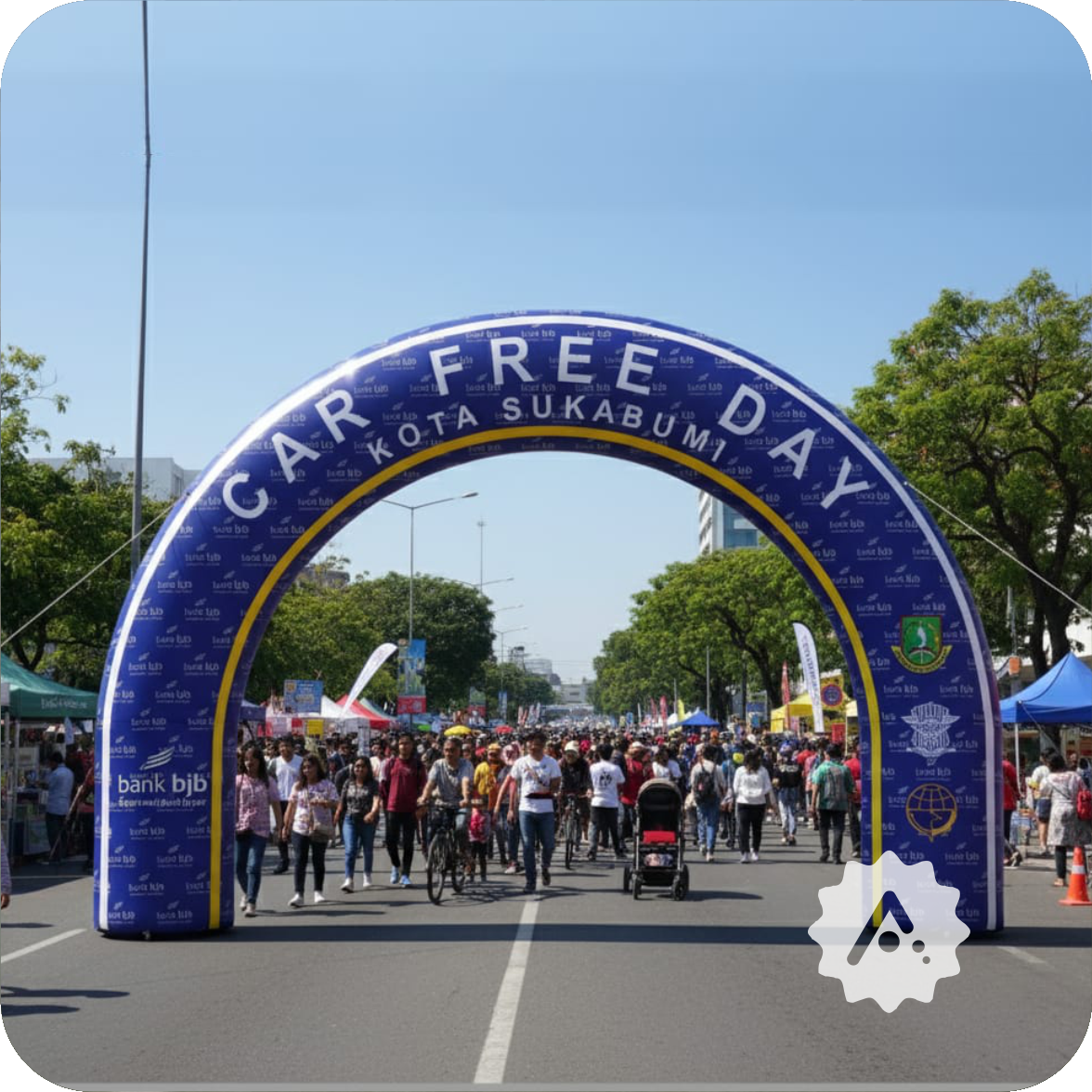 Saat ini, desain balon gate fun run semakin berkembang mengikuti tren visual yang modern dan kreatif. Tidak hanya berbentuk lengkungan sederhana, kini banyak balon gate dengan desain 3D, gradasi warna, hingga bentuk maskot. Hal ini membuat tampilan event semakin unik dan berkarakter.
